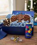 Celebrate this Hanukkah sameach with the perfect combination of chocolate-covered treats and festive fun. Order the Happy Hanukkah Box today and enjoy a holiday filled with sweet moments!